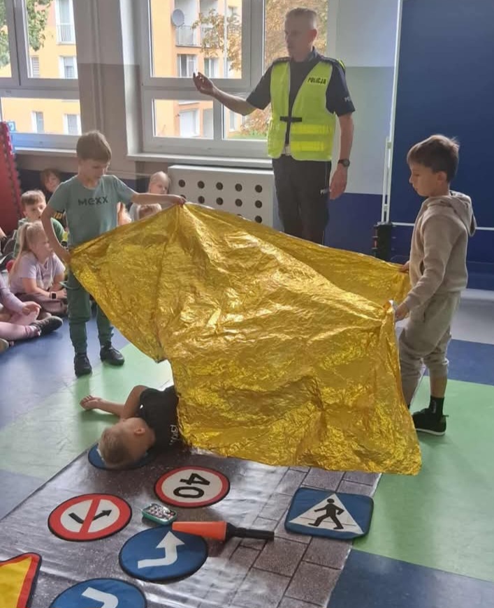 Uczniowie klas 1-3 SSP brali udział w spotkaniu z przedstawicielami policji. Uczyli się bezpiecznie poruszać po drogach oraz udzielania pierwszej pomocy. Zajęcia miały wydźwięk praktyczny co zdecydowanie uatrakcyjniło formę przekazu i spowodowało, że uczniowie aktywnie brali udział w akcji.